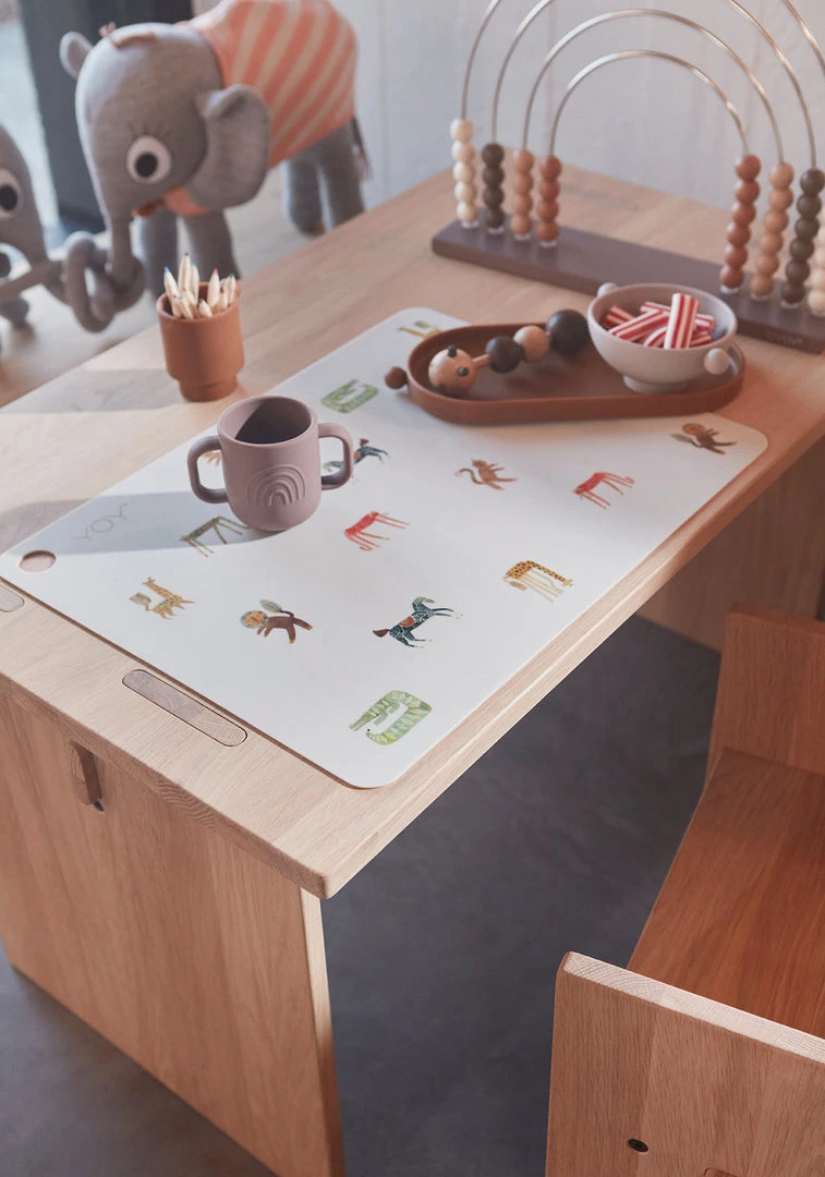 The table is produced in Europe in solid oak. Combine the bench with the rest of the furniture from the Arca range. Here you will find, among other things, a bench and a stool, all of which are furniture made for children in durable and functional material. The table is delivered flatpacked and is easy to assemble. The wood is treated with a white pigmented oil.