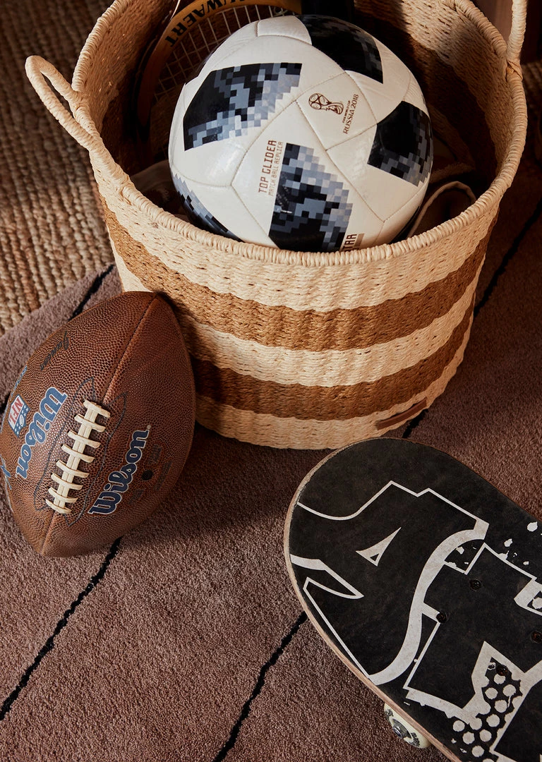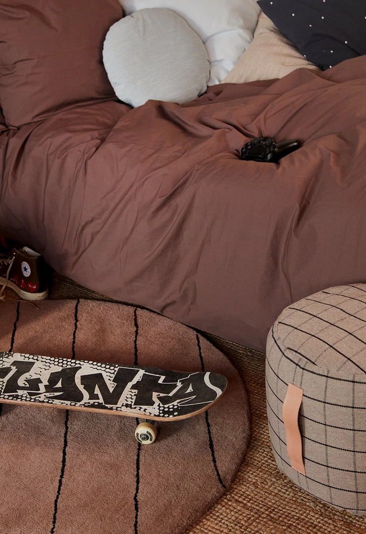 The Striped Circle Rug is made of wool and cotton. The graphic stripes give the rug a modern and classic look – the stripes are characteristic of many of our designs.