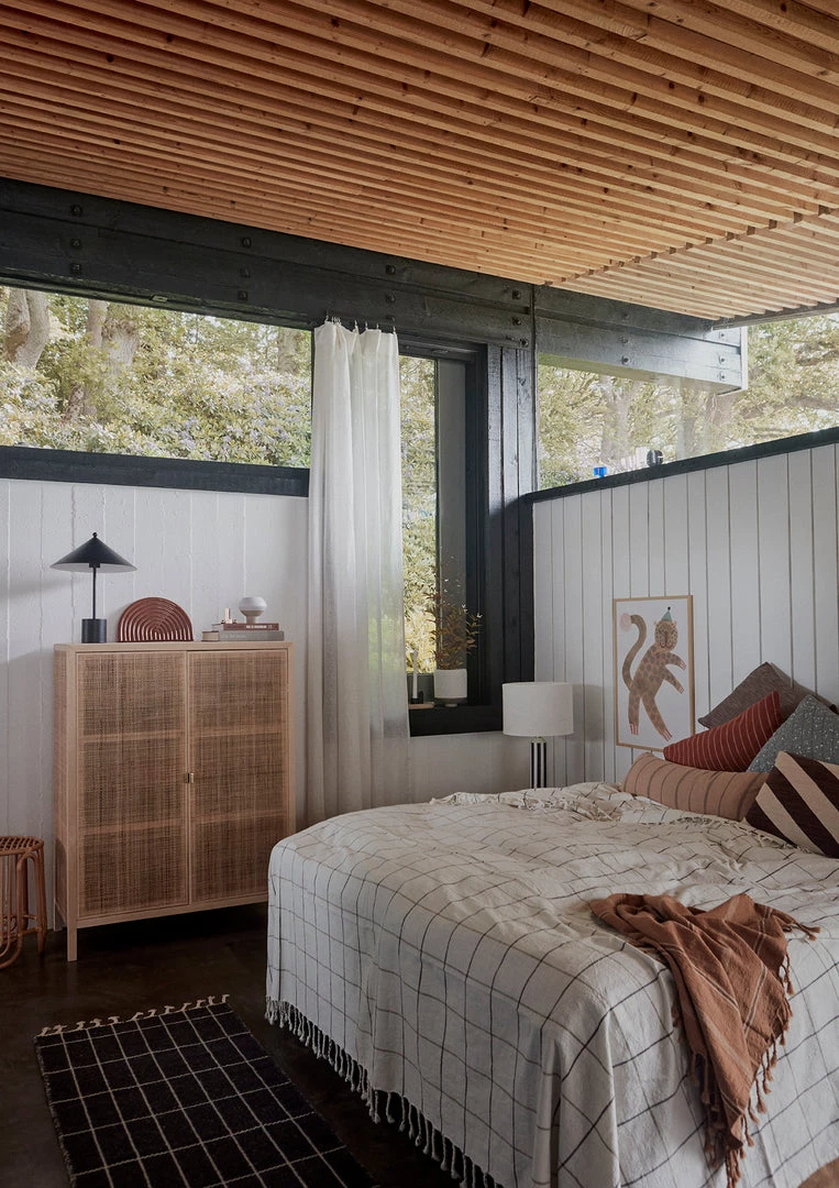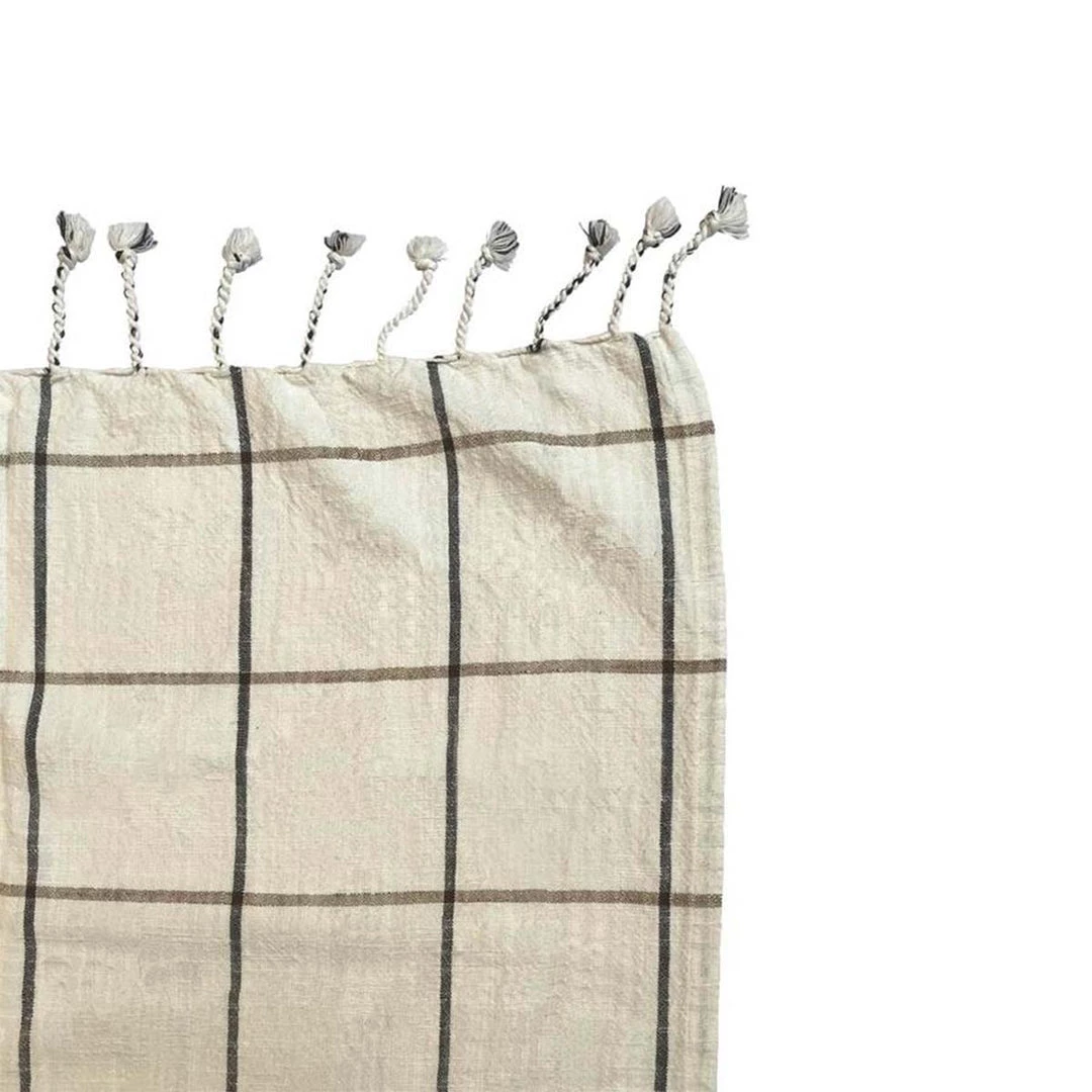 A large bed cover for the bedroom in a delightful soft woven quality. This rug is light and airy and therefore easy to deal with and lay on the bed. The simple rug in calming colors has fine little details of fringes at the ends.
