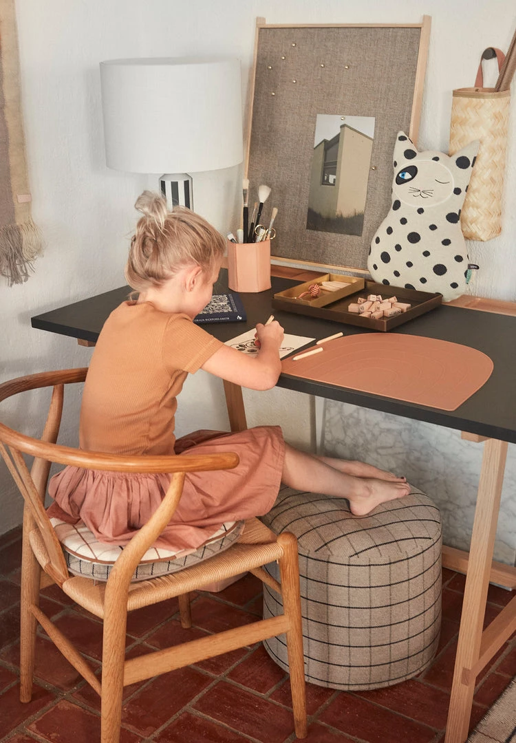 With this Grid Pouf, you get a modern and practical item for the whole family. The pouf is made in a thick woven quality with leather handle, which makes it easy to move around. Use this pouf as a footstool or as an extra sitting space, when the family gathers.