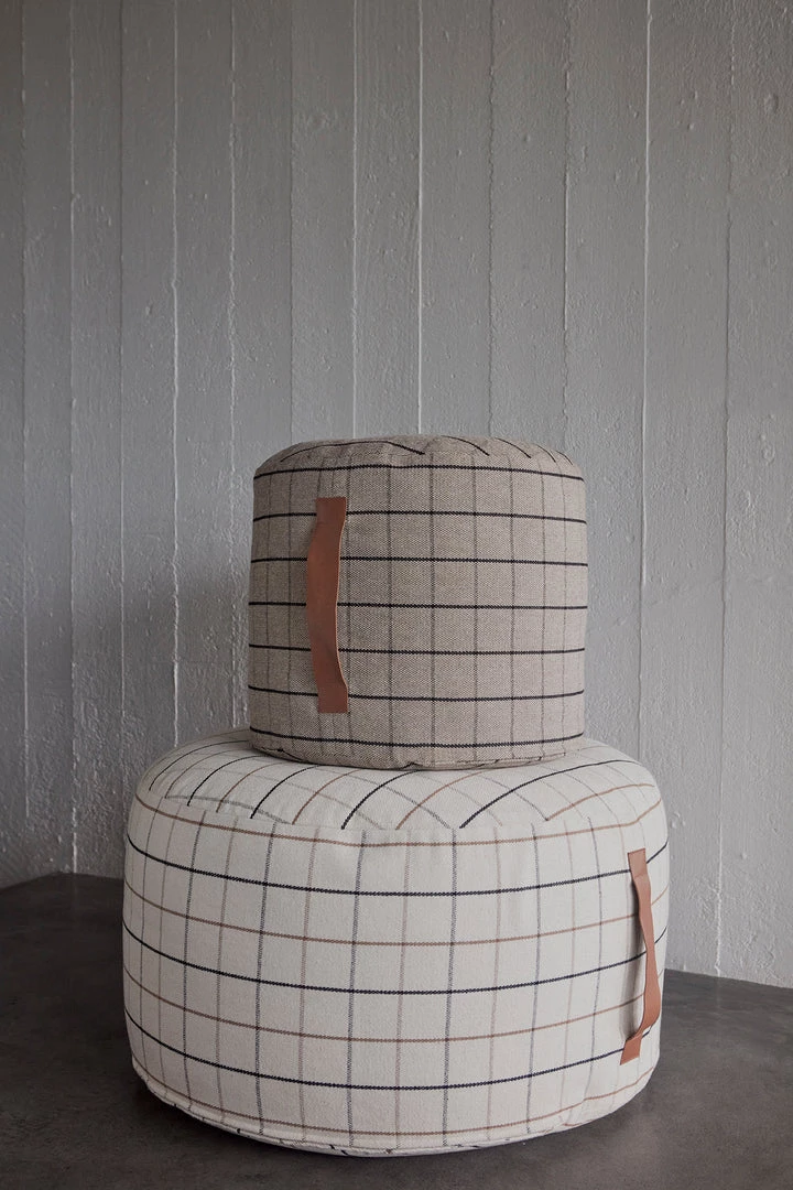 With this low Grid Pouf, you get a modern and practical item for the whole family. The pouf is made in a thick woven quality with leather handle, which makes it easy to move around. Use this pouf as a footstool or as an extra sitting space, when the family gathers.