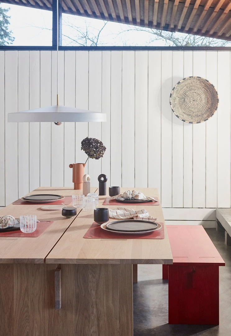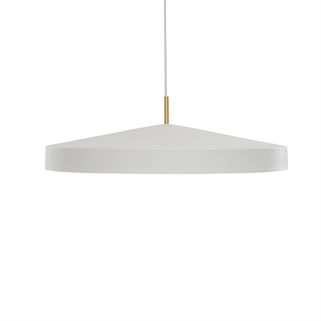 The beautiful Hatto Pendant in white has a simple and elegant expression which fits nicely into any décor. The name Hatto means hat in Japanese and refers to the shape of the pendant. The lamp has fine brass details at the top and a fabric cord.