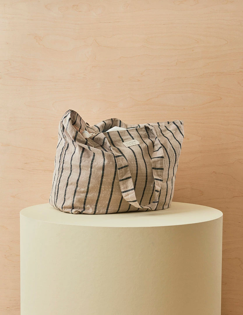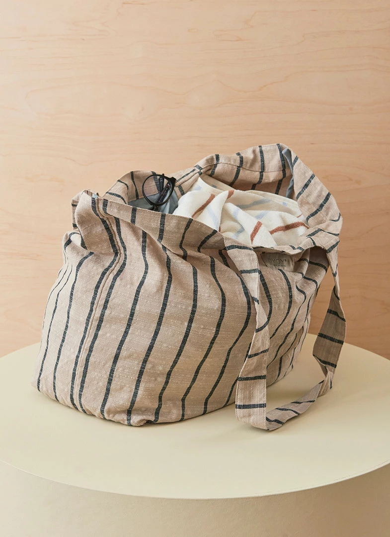 The most beautiful beach bag with space for just what you need. With the Kyoto Beach Bag, you have room for all necessities when going to the beach. The beach bag is made of recycled polyester and the design is simple and playful with stripes – choose between two pretty colors.