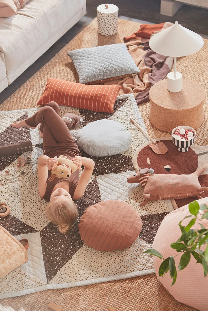 The cushion is woven in organic cotton and is filled with down and feathers. We recommend to wash the cushion cover on 30° machine wash – wash inside out.