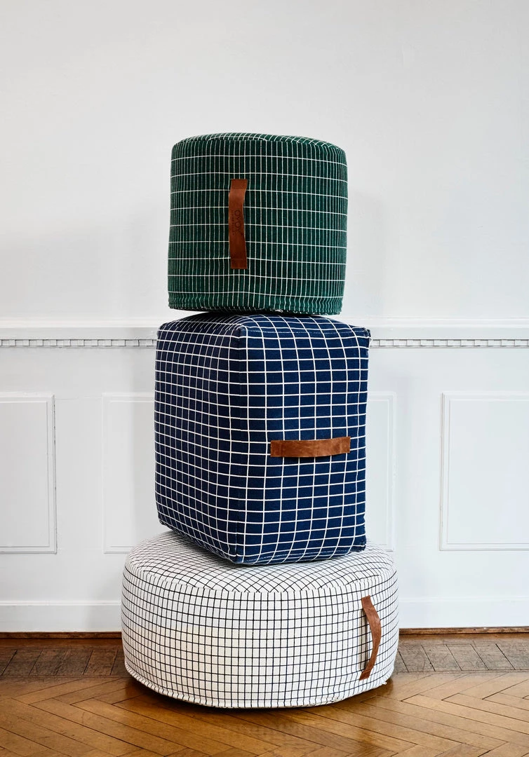 The Sit On Me pouf is beautiful and practical. The leather handle on the side makes it easy to move around. The graphic pattern gives the pouf a modern look, making it ideal to use as a stylish and colorful element in the living room.