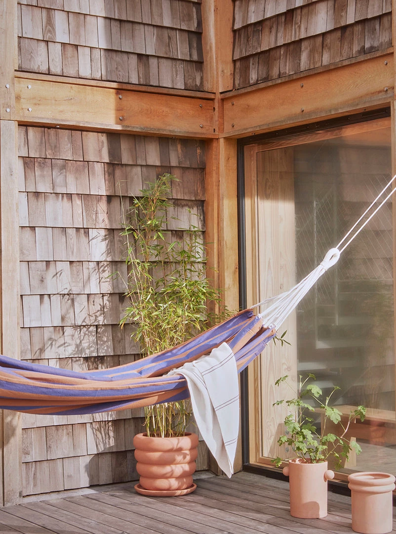 Enjoy the summer in the hammock and cuddle up with our outdoor cushions in the same series.