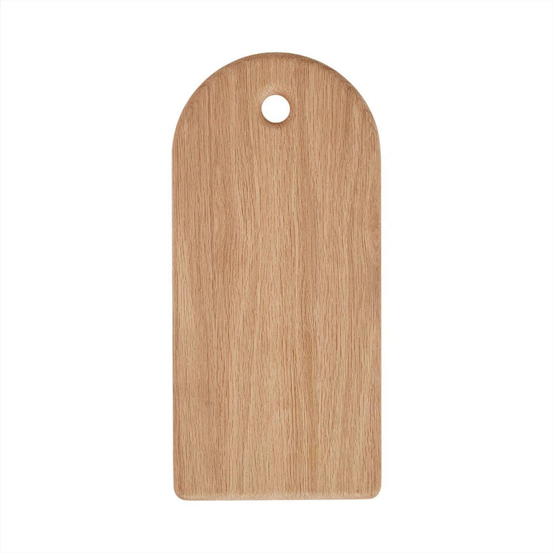 The Yumi Cutting Board is made of FSC certified oak. The cutting board has a modern and aesthetic expression with soft and rounded edges. Use the cutting board conveniently or for tapas. The Yumi Cutting Board can stand on the kitchen table or hang on the wall.