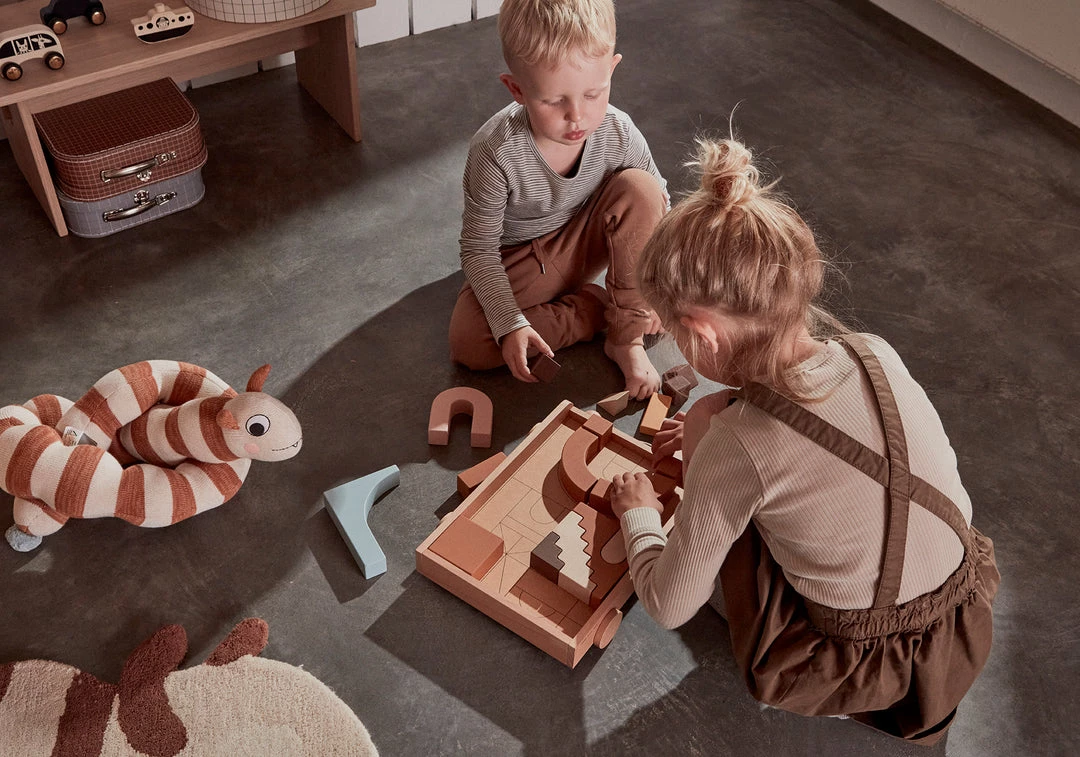Only the imagination limits what there can be build out of the blocks. Build a rainbow or a city to stimulate the child’s tactility.