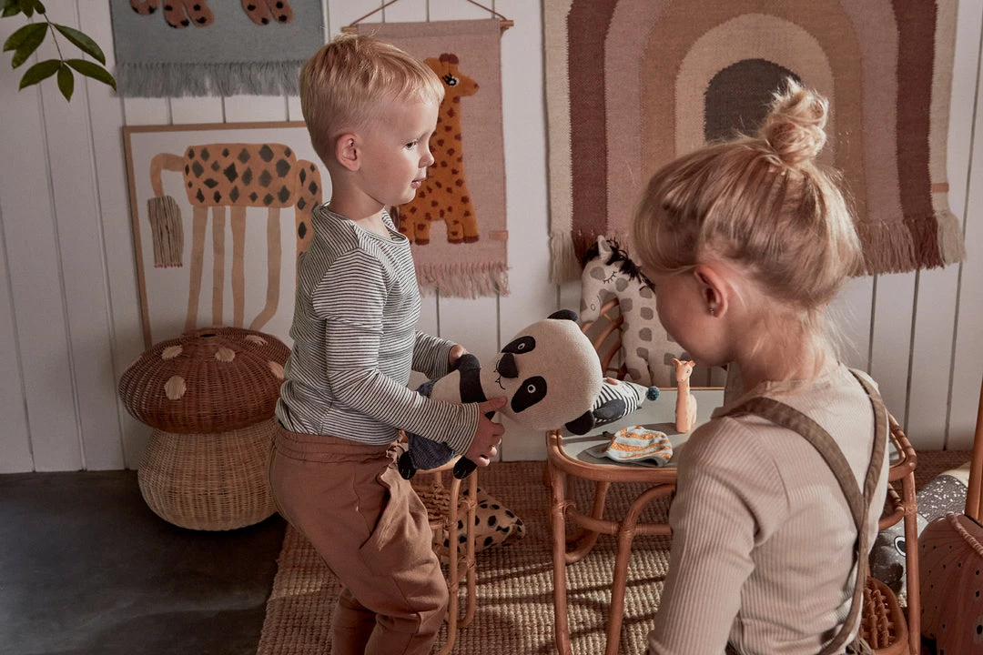The Panda Bear Ling Ling is both adorable to look at and comfortable to cuddle, making it the perfect accessory for the kidsroom. The panda bear has some fine pants on, which can also be taken of.
