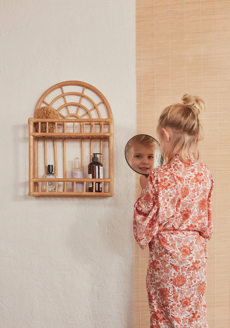 Inspired by bamboo furniture from childhood, this Rainbow Shelf is designed. The Shelf has many functions but is especially suitable for your favorite beauty products in the bathroom or for keys and others in the entrance.