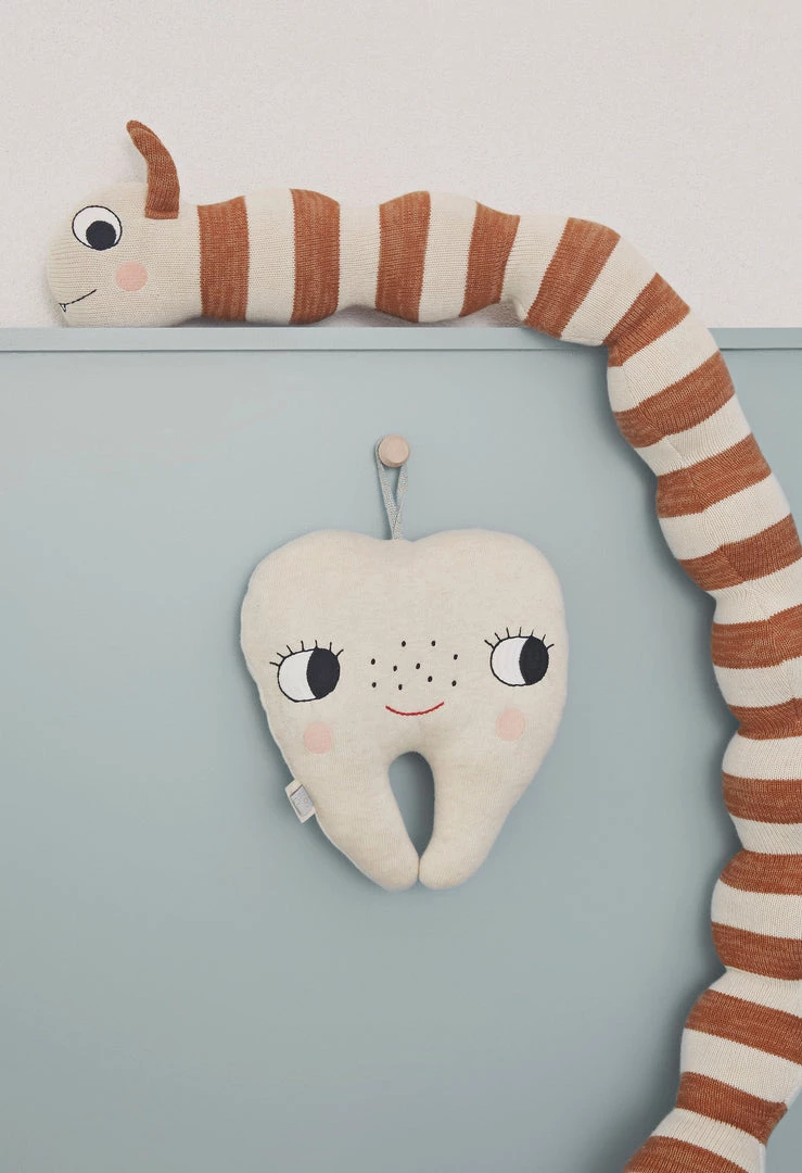 The Tooth Fairy is made of 100% cotton, knit, and has a soft fibre filling.